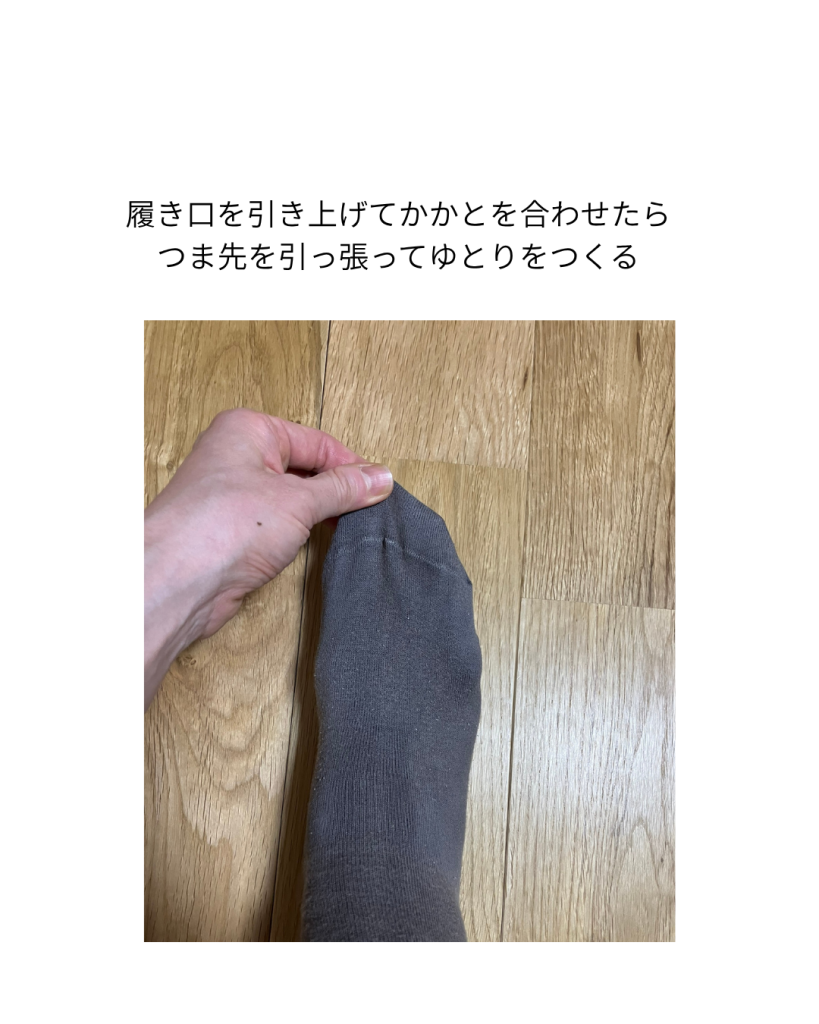 締め付けられていたら靴下の先を引っ張って緩めてください。