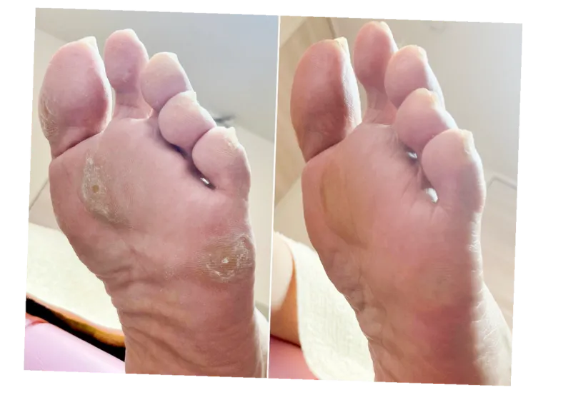 足裏がガサガサで硬く、ひどい状態でした。見られるのが恥ずかしくて、ずっと自分で削っていました。「こんな足を人に見せていいのかな」と思うと、サロンを予約する勇気がなかなか出ず、何ヶ月も悩んでいました。